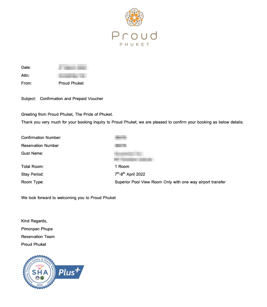Before further processing our booking on your website, we want to double-check if the hotel provides SHA Extra+ reservation confirmation including airport transfer. We will need to provide this document to apply for Thaipass.